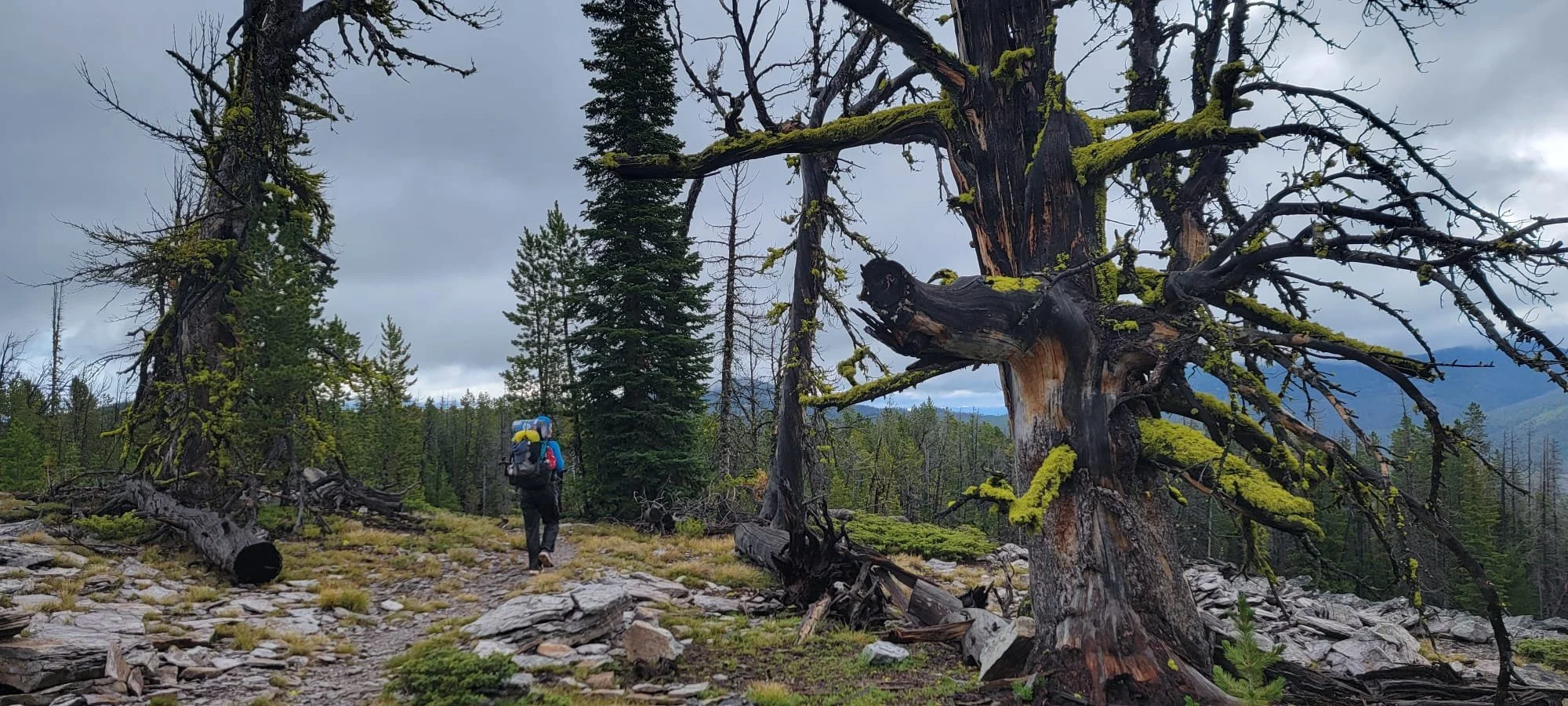 The landscape was nothing to look at either. The past day or so was rolling hills through trees. There would occasionally be a break for a large bare hilltop, but otherwise it was forest walking. I love the expanse of Montana and the 'largeness' that comes with seeing rolling hills in all directions for miles and miles. The dark clouds and persistent afternoon drizzle was shrinking the terrain.